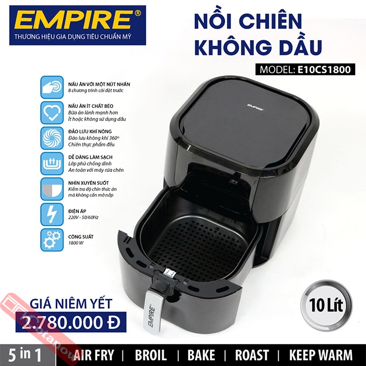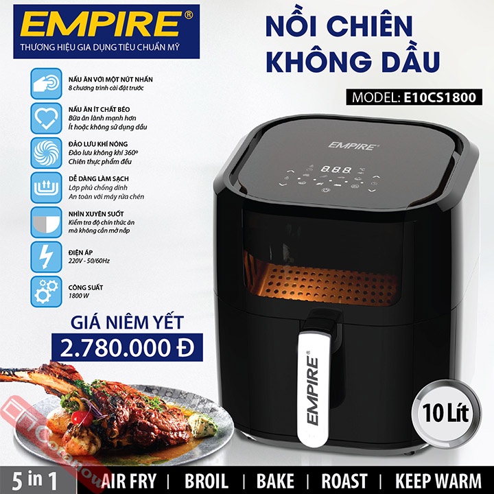 Nồi Chiên Không Dầu 10 Lít Empire E10CS1800 1800W, Bảo Hành 12 Tháng, Cảm Ứng LCD, 8 Chương Trình Cài Đặt - COTANOW