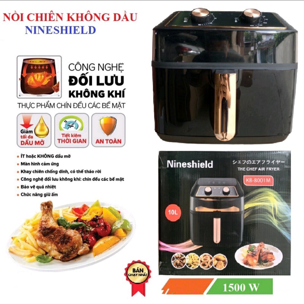 Nồi chiên không dầu 10L 8L Nineshield chính hãng hàng loại 1 bảo hành 12 tháng