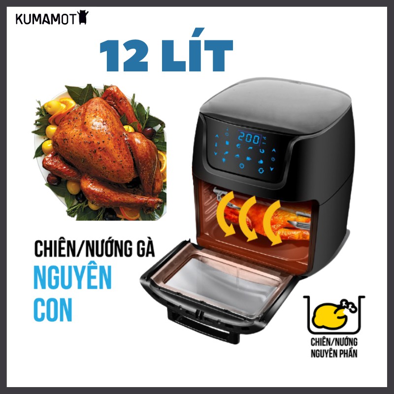 Nồi Chiên Không Dầu 12 Lít Xoay Tự Động - MÀN HÌNH CẢM ỨNG HIỆN ĐẠI - QUAY NGUYÊN CON GÀ