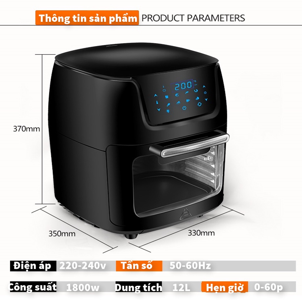 Nồi chiên không dầu 12L [BH 12 THÁNG] công suất lớn 1800W, xaoy tự động, dung tích lớn 12LTHÔNG SỐ Ỹ THUẬT: