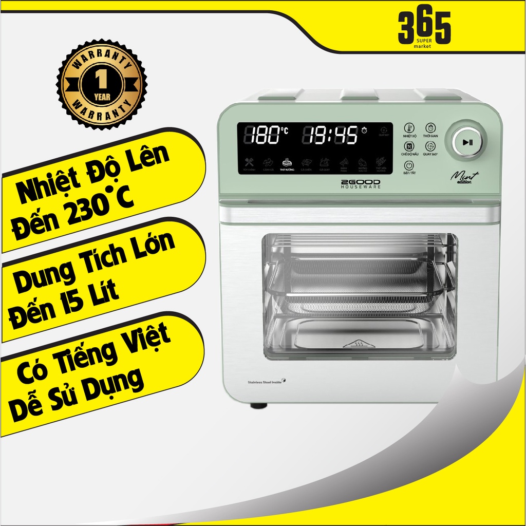 🎁🎁🎁 THÔNG SỐ KỸ THUẬT:Nồi Chiên Không Dầu 2Good S19 14.5 Lít Màn Hình LCD Nút Bấm Cơ Cảm Biến Inox 304 Thương Hiệu Malaysia