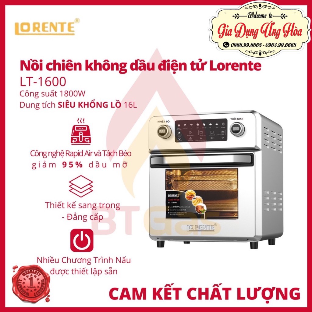 Nồi Chiên Không Dầu 16L Lorente LT 1600- Điều Khiển Cảm Ứng-8 Chế Độ Cài Đặt Sẵn