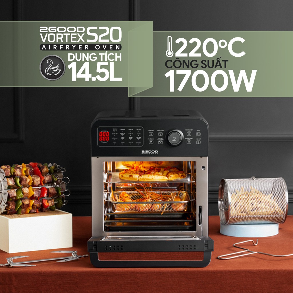 Giới thiệu Nồi Chiên Không Dầu 2GOOD Vortex S20 Dung Tích 14,5 Lít Với 16 Chế Độ Nấu, Chất Liệu Inox 304 (Tặng Kèm Găng Tay)