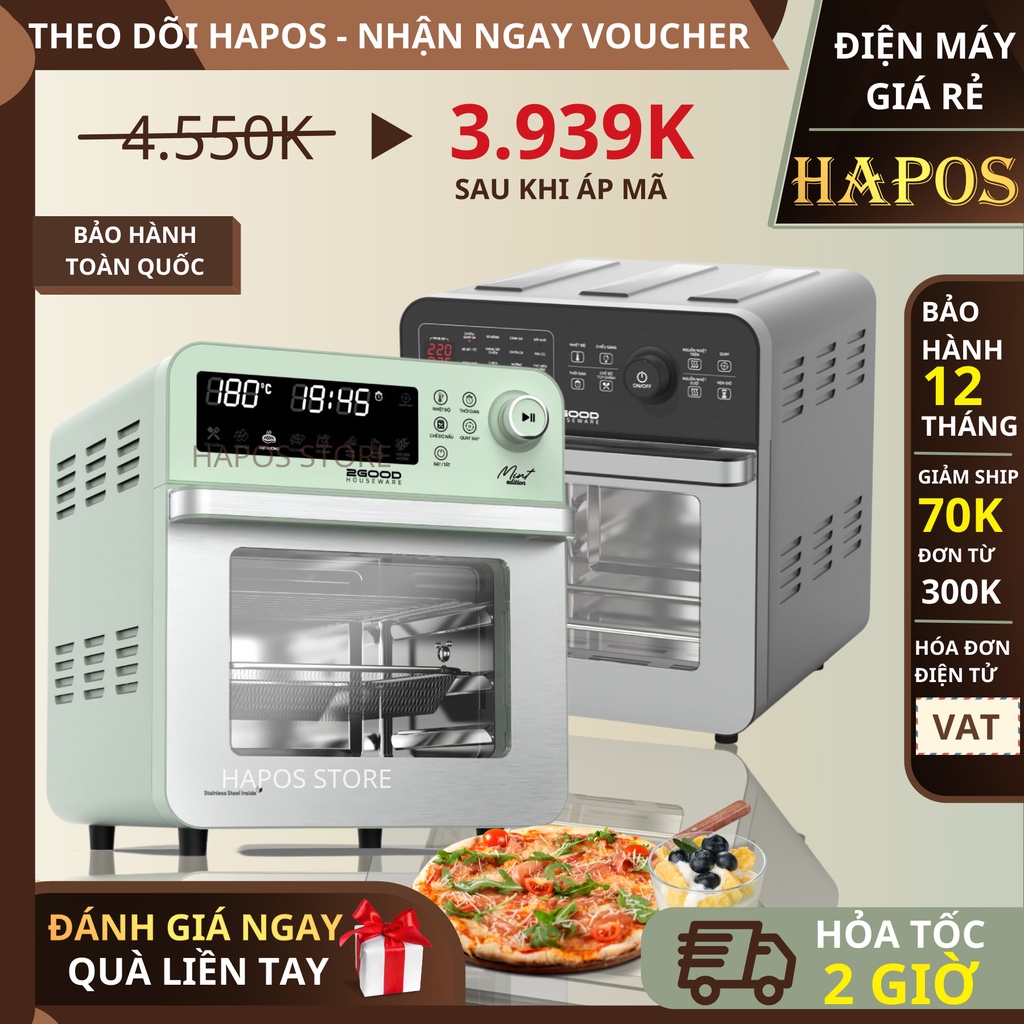 Nồi chiên không dầu 2GOOD Vortex S18, S19, S20 inox 304, lò nướng điện làm bánh mì, thịt, cá đa năng chính hãng - HAPOS