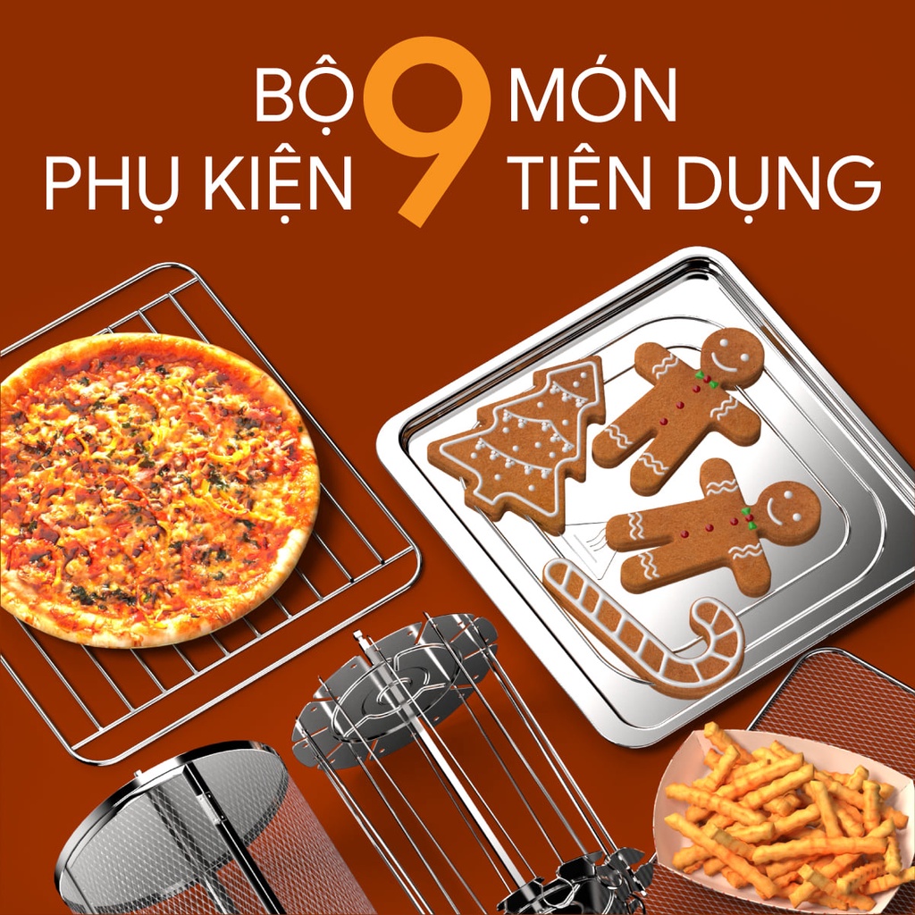 💥 Nhiệt độ cao nhất lên đến 220°C giúp nấu nhanh hơn, món ăn giòn hơn