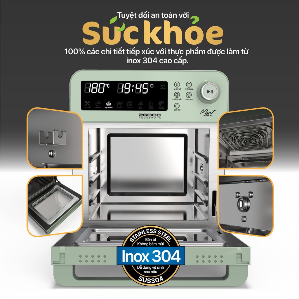 Nồi chiên không dầu 2GOOD Vortex S19 (14,5 Lít), Lõi Inox 304BA bóng chống gỉ đa chức năng 2GOOD S-19 - HAPOS Phân Phối