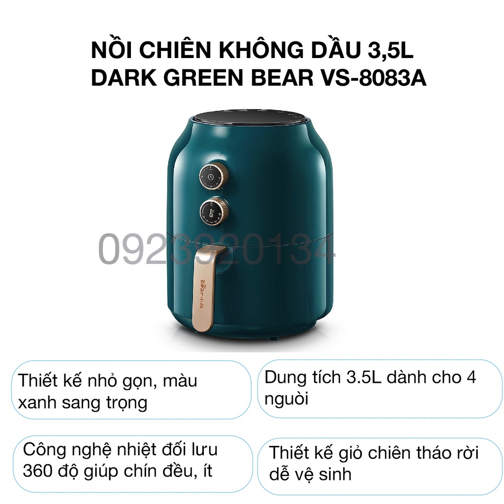 Giới thiệu [Mã ELHADEV giảm 4% đơn 300K] Nồi chiên không dầu 3,5l dark green Bear VS-8083A