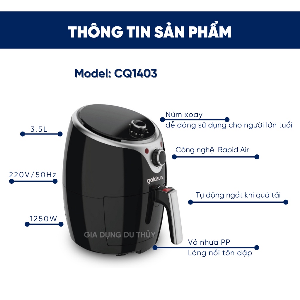Nồi chiên không dầu 3.5L Goldsun núm xoay, công nghệ mới Rapid Air chín bên trong, giòn bên ngoài, loại bỏ 80% chất béo