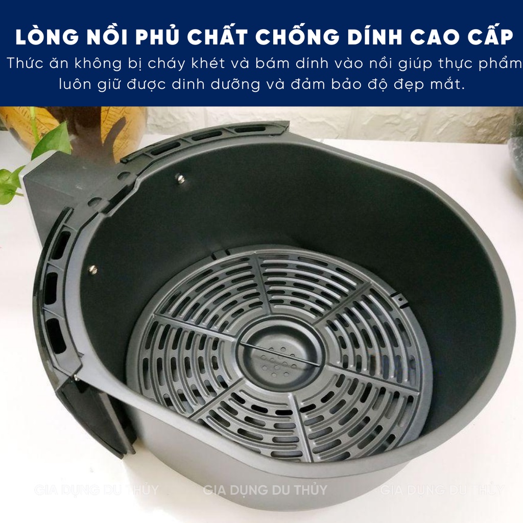 Lòng nồi chiên không dầu Goldsun được phủ lớp chống dính cao cấp siêu bền, an toàn cho sức khỏe cho người dùng. Thức ăn không bị cháy khét và bám dính vào nồi giúp thực phẩm luôn giữ được dinh dưỡng và đảm bảo độ đẹp mắt