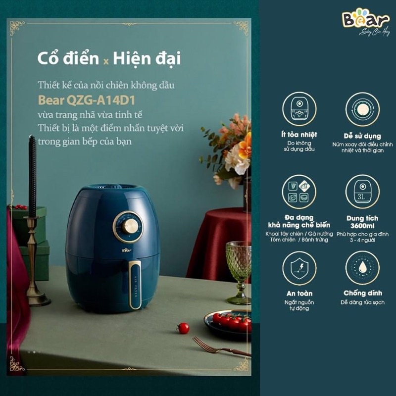 Giới thiệu Nồi chiên không dầu 3.6L Bear QZG-A14D1
