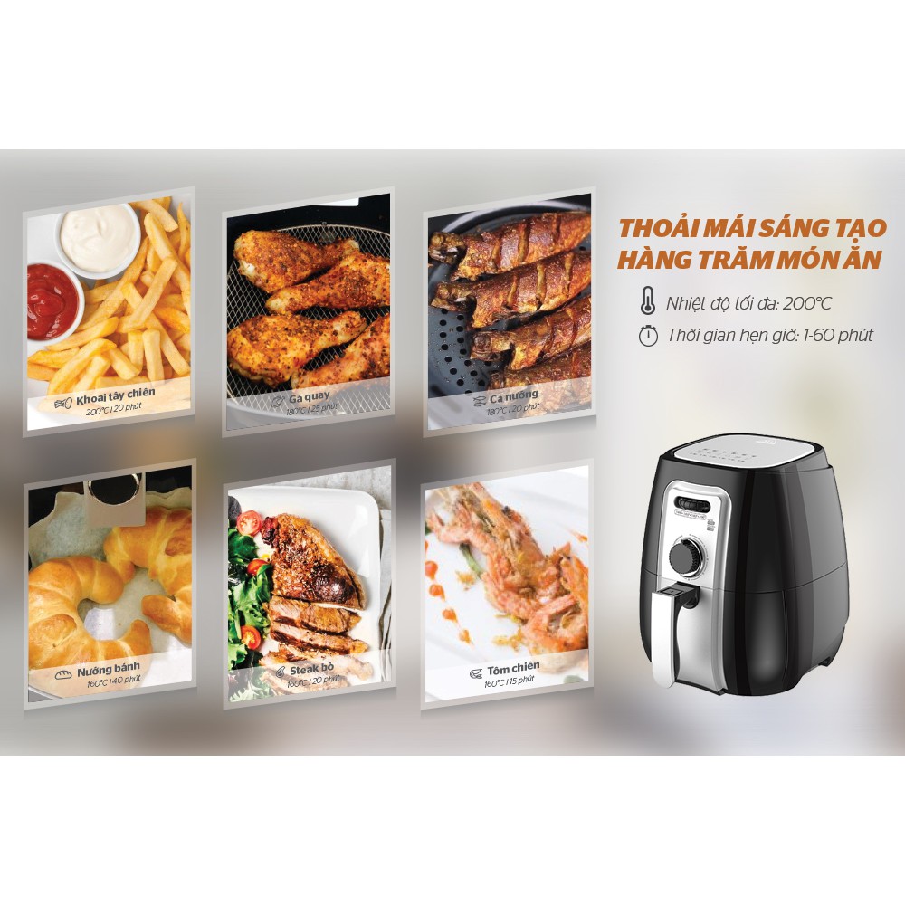 [Mã ELHADEV giảm 4% đơn 300K] Nồi chiên không dầu 3L SUNHOUSE SHD4025B