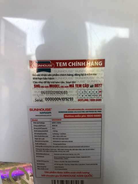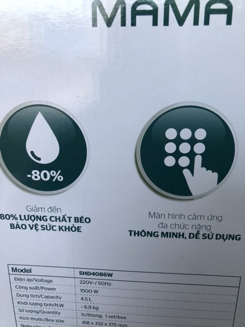👉Shop mình cho xem hàng nên các bạn yên tâm về chấttriển mới trong công nghệ chế biến thức ăn, đặc biệt với các món chiên rán. Với cách chế biến truyền thống, bạn cần một lượng dầu mỡ nhất định mới có thể làm chín thực phẩm, đi kèm với đó là những lo ngại về sức khỏe và sự an toàn khi chế biến. Với công nghệ Rapid Air ứng dụng trong nồi chiên không dầu 4.5L SUNHOUSE MAMA SHD4086W, việc chiên rán không những nhanh gọn hơn mà còn tốt hơn cho sức khỏe.