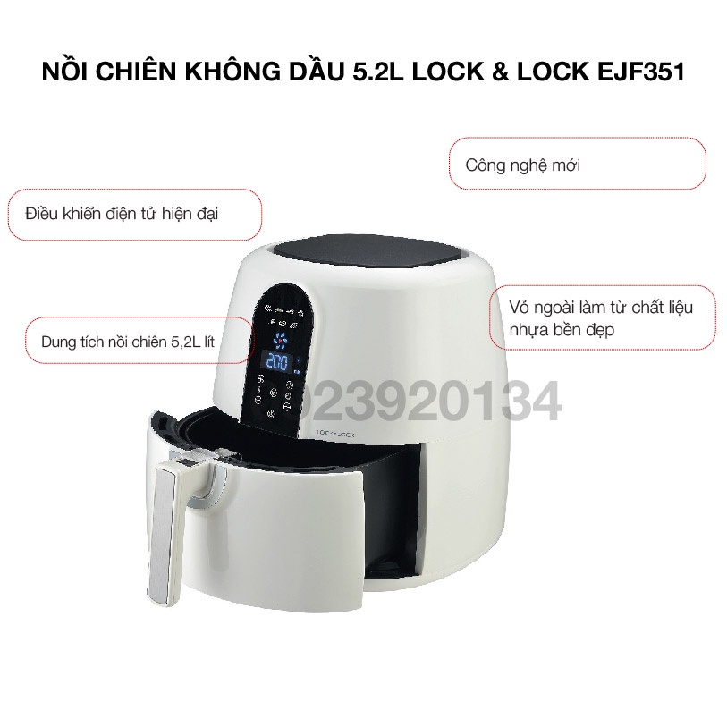[Mã ELHADEV giảm 4% đơn 300K] Nồi chiên không dầu 5.2L Lock & Lock EJF351