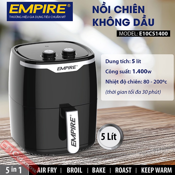 Nồi Chiên Không Dầu 5 Lít Empire E5CS1400 1400W, Bảo Hành 12 Tháng, Công Nghệ Đảo Lưu Khí Nóng - COTANOW