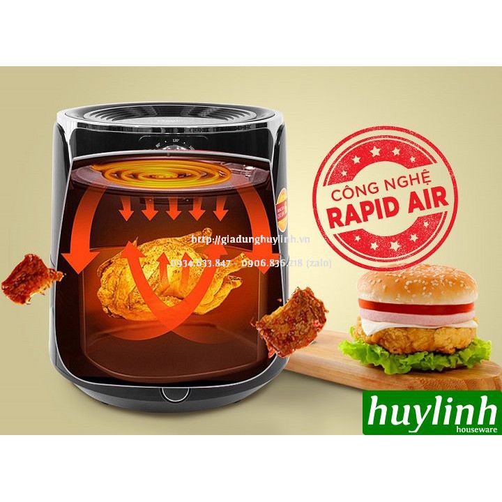 Công nghệ đốt nóng chân không Rapid Air: Đây là công nghệ tiên tiến của Nồi chiên không dầu được cải tiến qua từng sản phẩm. Thức ăn sẽ được khí nóng luân chuyển xung quanh theo nhiều luồng áp sát giúp thức ăn chín đều, vừa phải và vẫn giữu đúng hương vị vốn có.