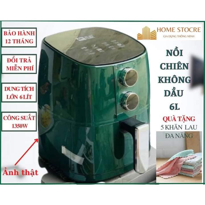 NỒI CHIÊN KHÔNG DẦU CAO CẤP CAMEL 6 LÍT CÔNG SUẤT 1500WQUÀ TẶNG: 5 KHĂN LAU BẾP ĐA NĂNG