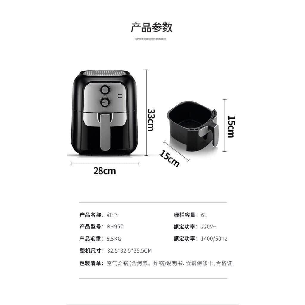 Thiết Bị Điện Gia Dụng > Đồ gia dụng nhà bếp > Nồi chiên không dầu || Nồi chiên không dầu 6L Hongxin RH957Còn hàng