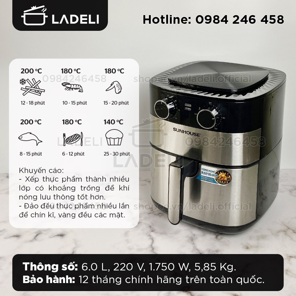 [Mã ELHADEV giảm 4% đơn 300K] Nồi chiên không dầu 6L SUNHOUSE SHD4026 bảo hành 12 tháng