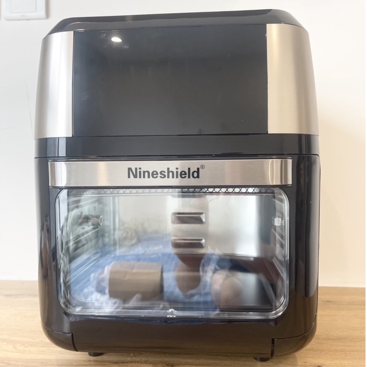 🕶️Nồi chiên không dầu điện tử Nine Shield với mặt kính phía trước và chế độ đèn nhiệt sáng tự động giúp chị em có thể quan sát được đồ ăn khi đang nướng. Đặc biệt nồi được thiết kế rất thông minh và hiện đại với chế độ tự xoay đồ ăn khi đang nướng và quạt điều hòa nhiệt độ làm cho thức ăn chín đều mà không phải lật đi lật lại. Cùng với đó là chế độ hút khí chân không giúp cho mùi đồ ăn không bị ảm ra bên ngoài nên rất sạch sẽ và tiện lợi.