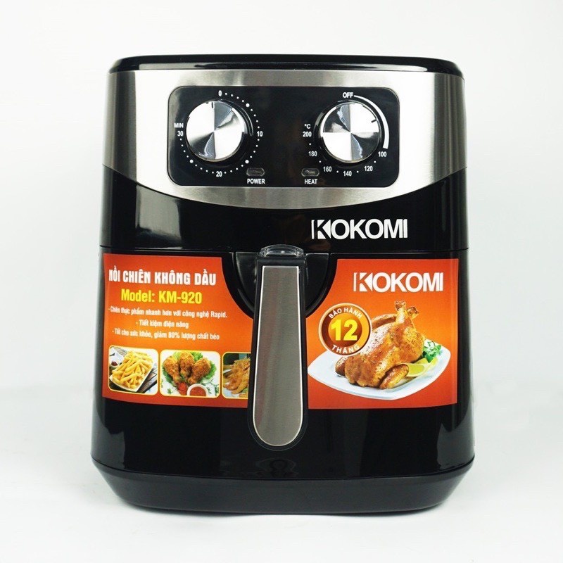 - Nồi chiên không dầu KOKOMI KM-920 là loại nồi cơ với 2 núm vặn cho phép bạn điều chỉnh nhiệt độ và thời gian linh hoạt, dễ sử dụng và đặc biệt bền chắc.
