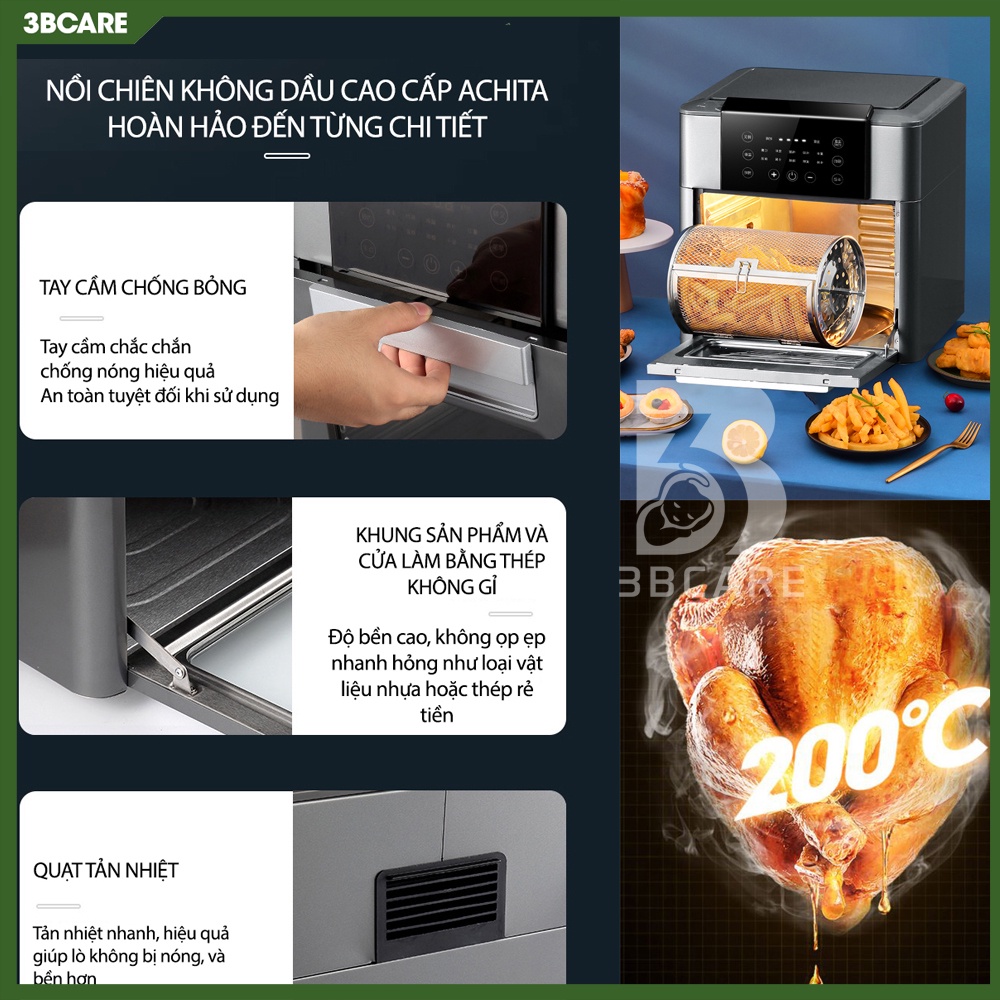 3B Care kính chào quý khách! Đây là Nồi chiên không dầu ACHITA, bạn sẽ được đổi trả miễn phí nếu có lỗi từ NSX, giao hàng nhanh, xử lý đơn trong 2 giờ.