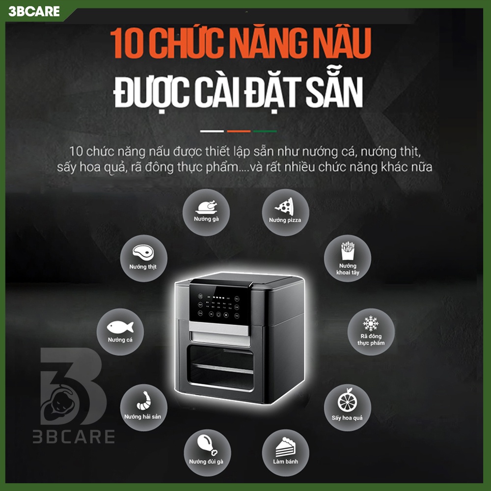 - Có thể thay thế 9 loại thiết bị nhà bếp như: Máy làm sữa chua, lò vi sóng, nồi chiên sâu, máy nướng bánh mì, lò nướng, nồi chiên thường, máy làm pizza, máy làm bỏng ngô, máy sấy hoa quả giúp tiết kiệm không gian nhà bếp 1 cách hiệu quả