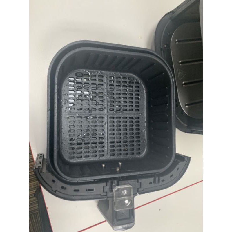 - Nồi chiên không dầu của bạn được đóng gói với giỏ chiên được khóa trong ngăn kéo, bên trong thân sản phẩm. Nắm chắc tay cầm giỏ chiên để mở ngăn kéo, sau đó tháo ngăn kéo ra khỏi máy và đặt trên khu vực làm việc bằng phẳng, sạch sẽ.