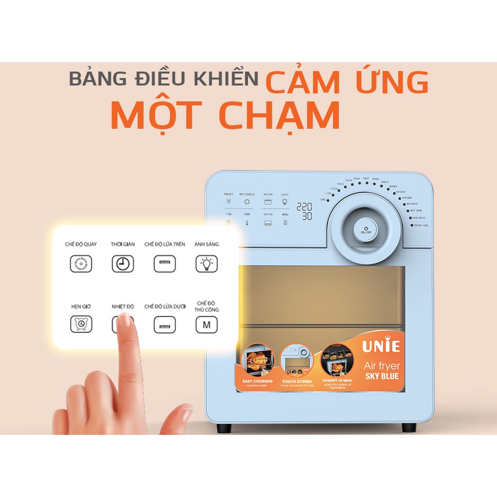 Nồi chiên không dầu Air Fryer UNIE Sky Blue dung tích lớn 14,5L công suất 1700W hàng chính hãng bảo hành 1 đổi 1