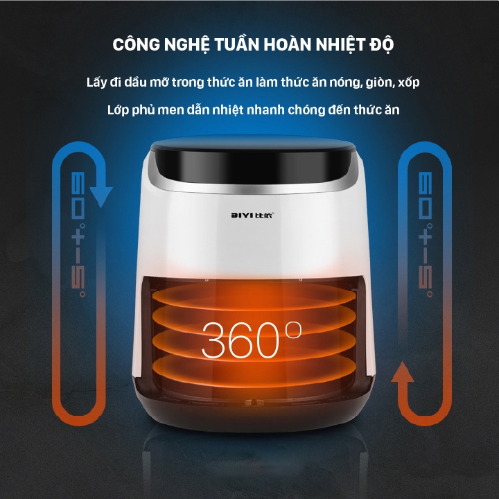 Giới thiệu Nồi chiên không dầu AirFryer BIYI AF-69A 4L 1500W - Phủ chống dính an toàn, thép không gỉ - Bảo hành 12 tháng