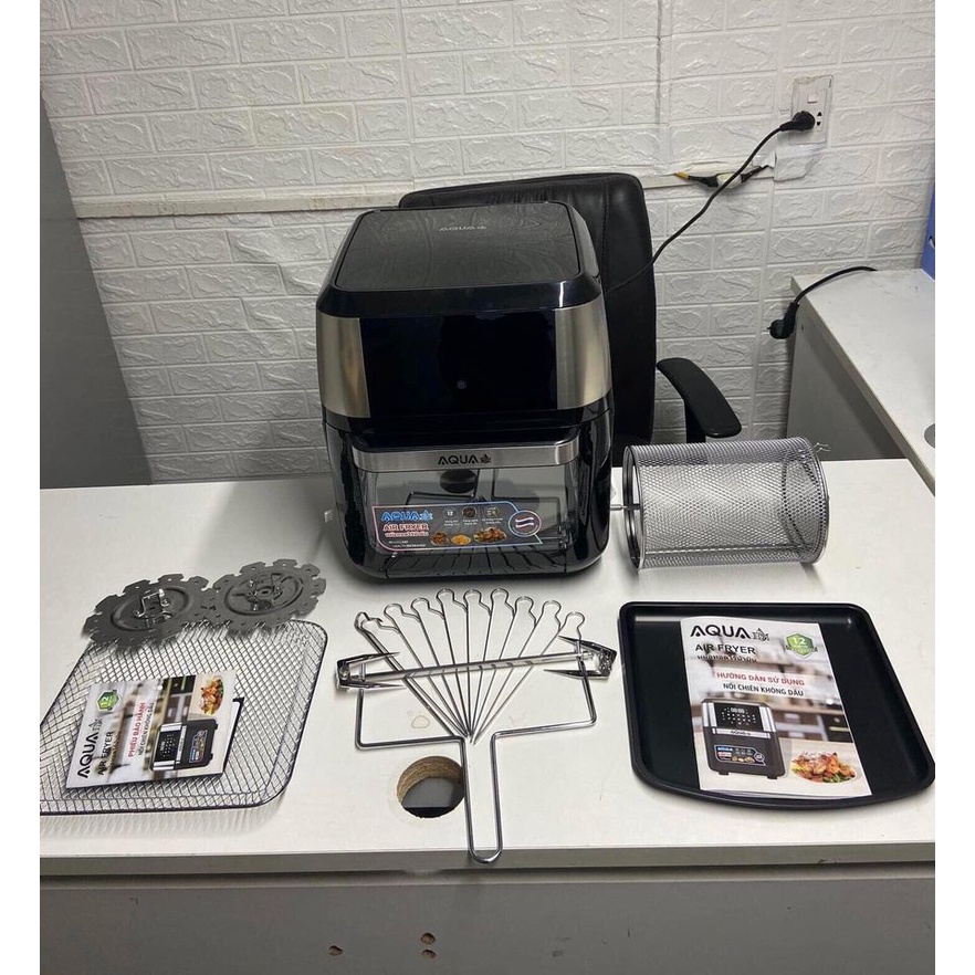 Nồi chiên không dầu AQUA Nhật Bản DUNG TÍCH SIÊU LỚN 12L Màn hình CẢM ỨNG, Lồng quay, Tầng nướng - BH 12 tháng.- Thương hiệu: AQUA Nhật Bản