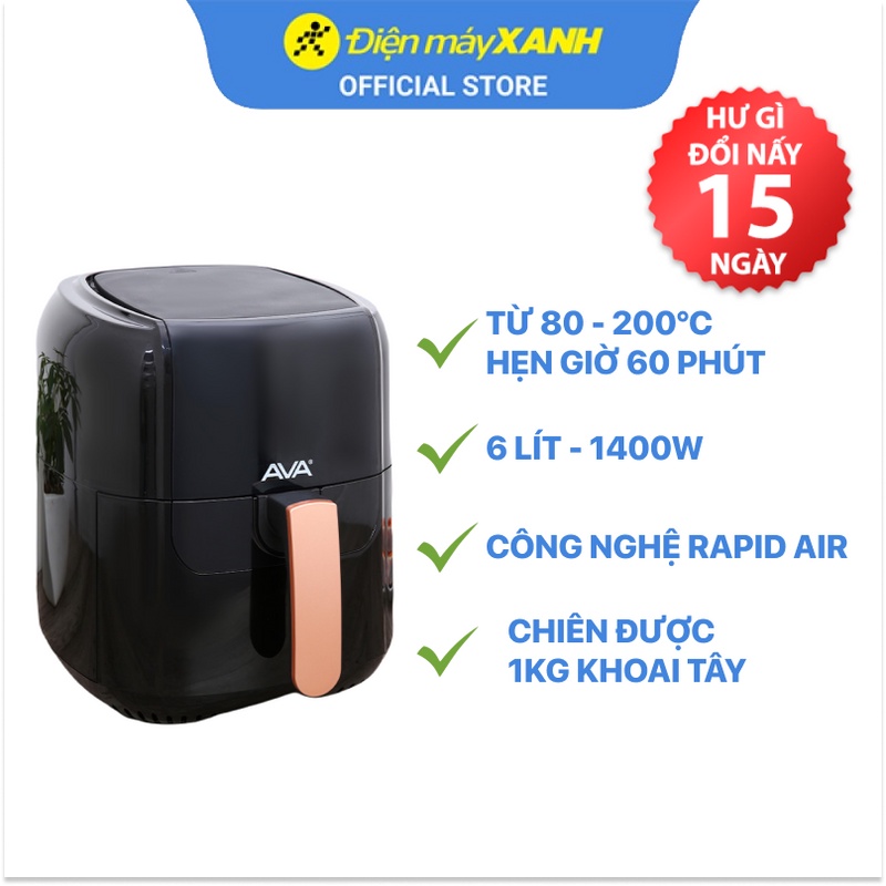 [Mã ELHADEV giảm 4% đơn 300K] Nồi chiên không dầu Ava BF502A 6 lít Công suất 1400W BH 12 tháng, Chính hãng