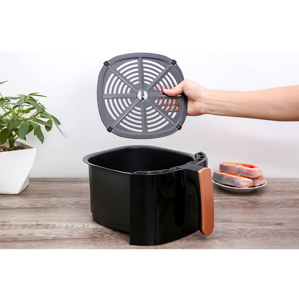 ●Nồi chiên không dầu với dung tích sử dụng 5.5 lít, có thể nướng được gà nguyên con dưới 2 kgVới dung tích lớn, bạn có thể nấu được nhiều món ăn cho gia đình và cho những bữa tiệc cùng bạn bè.