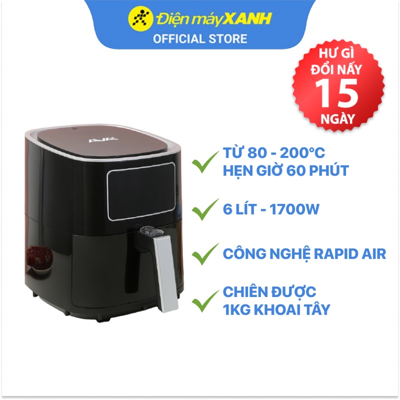 Thiết Bị Điện Gia Dụng > Đồ gia dụng nhà bếp > Nồi chiên không dầu || [Mã ELMALL150 giảm 8% đơn 500K] Nồi chiên không dầu Ava AF40155D 6 lít công suất 1700W - Hàng chính hãng BH 12 thángCòn hàng