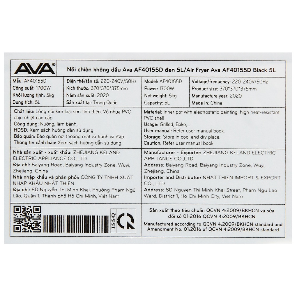 Giới thiệu [Mã ELHADEV giảm 4% đơn 300K] Nồi chiên không dầu Ava AF40155D 6 lít công suất 1700W - Hàng chính hãng BH 12 tháng