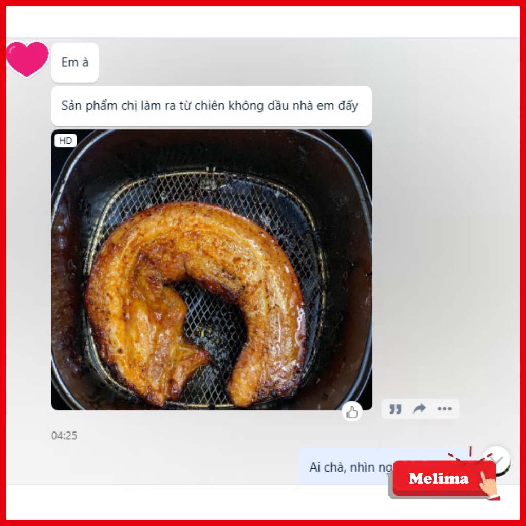 - Melima tặng bạn 01 cuộn giấy bạc chuyên dùng cho chiên rán thực phẩm dùng cho nồi chiên không dầu và một chổi quét dầu chuyên dụng. Với mong muốn xây dựng những căn bếp hạnh phúc Melima hy vọng có thể hỗ trợ bạn trở thành siêu đầu bếp tại gia đình mình.