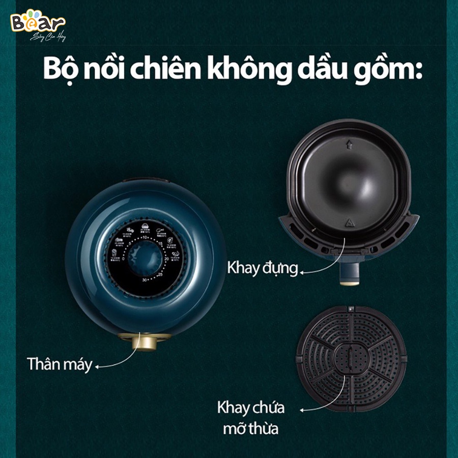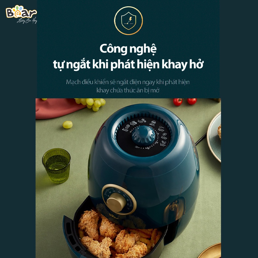Giới thiệu Nồi chiên không dầu Bear 3.6L QZG-A14D1 Lòng nồi thép không rỉ phủ chống dính - Bảo hành 18 tháng