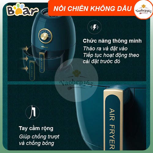 Giới thiệu Nồi chiên không dầu Bear dung tích 3L bảo hành 12 tháng, miễn phí đổi trả