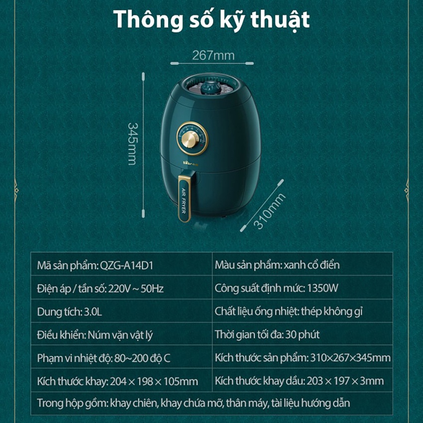 📣 Nồi chiên không dầu Bear QZG-A14D1 dung tích 3L
