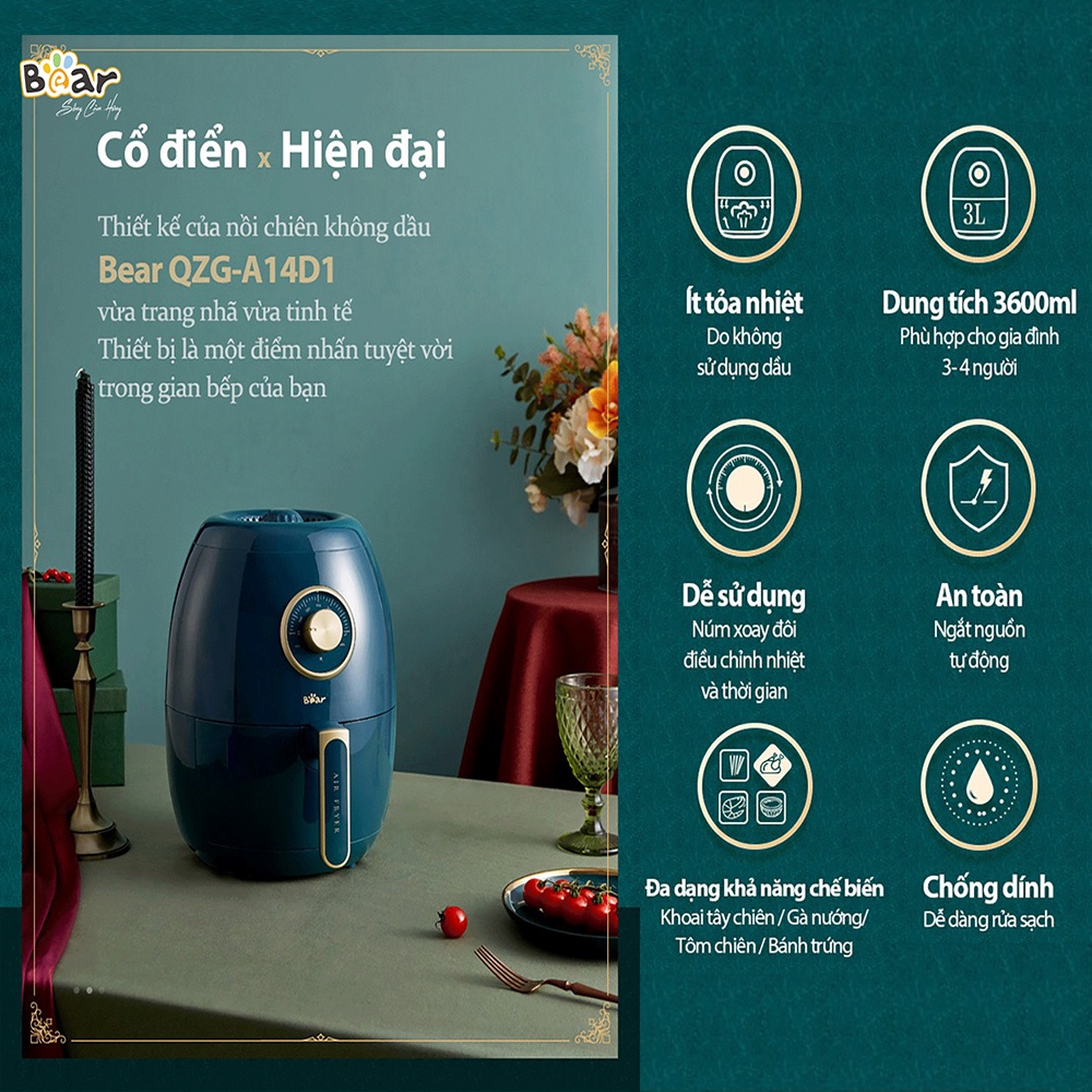 ✔️ Lợi ích của dùng nồi chiên không dầu Bear QZG-A14D1 3.6Lit: