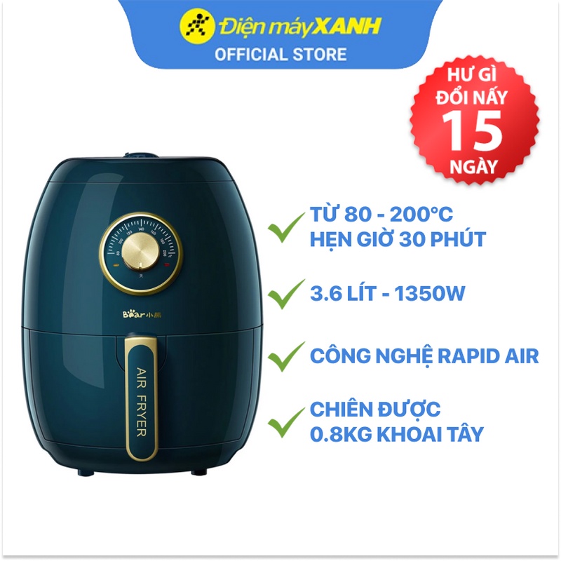 [Mã ELHADEV giảm 4% đơn 300K] Nồi chiên không dầu Bear QZG-A14D1 3.6 lít công suất 1350W - Hàng chính hãng BH 18 tháng