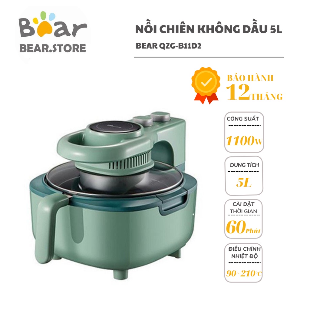 [Mã ELHADEV giảm 4% đơn 300K] Nồi chiên không dầu Bear QZG-B11D2 Dung tích 5L