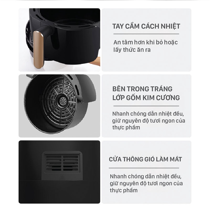 🧨-Công nghệ tuần hoàn nhiệt độ cao 360° , giảm thiểu dầu mỡ, nhanh chóng làm chín thức ăn