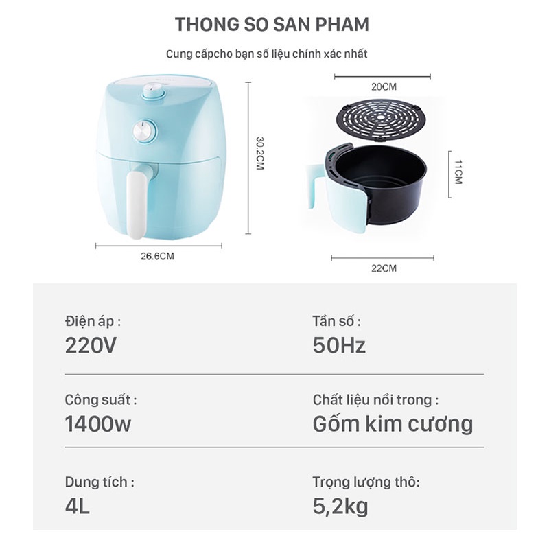 🧨-Dung tích lớn 4L, đáp ứng đủ nhu cầu cho cả nhà