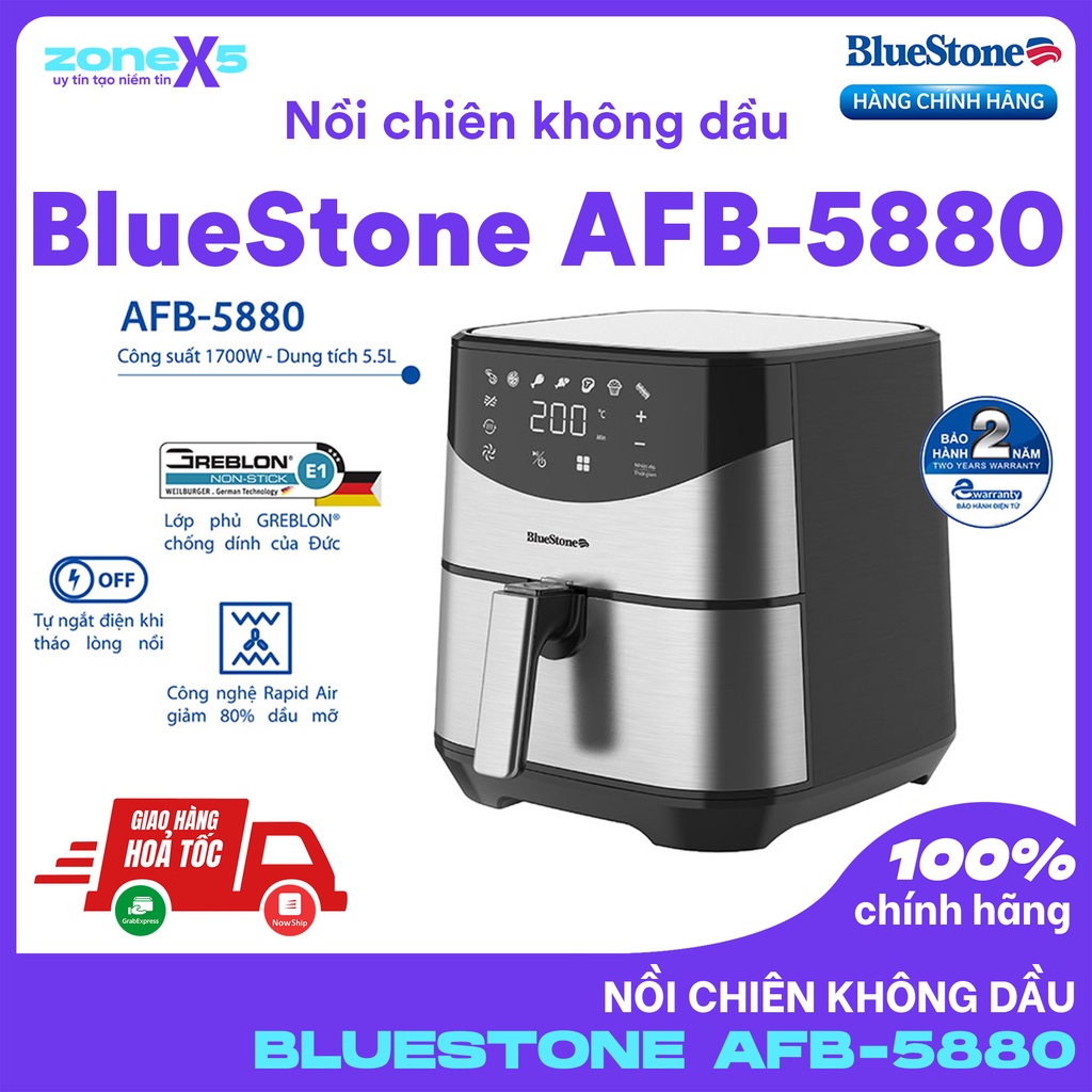 Nồi chiên không dầu Bluestone AFB-5880 - Bảng điều khiển điện tử kết hợp màn hình LED - Bảo hành chính hãng 24 tháng