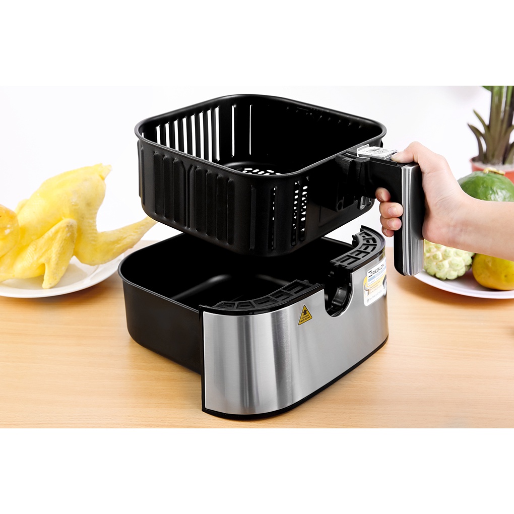 Kết hợp với chế độ tự ngắt khi kéo rổ chiên, bạn sẽ an tâm hơn khi sử dụng nồi chiên tại gia đình.