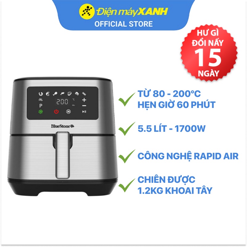 Nồi chiên không dầu Bluestone AFB-5878 5.5 lít công suất 1700W - Hàng chính hãng BH 24 tháng