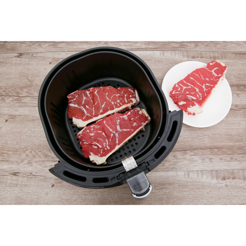 ● Nồi chiên không dầu Bluestone thiết kế sang trọng, dung tích 6.3 lít, chiên được 2 miếng sườn 0.5 kg cùng lúc.Sản phẩm có màu đen đơn giản, sạch đẹp, vỏ dày, bền bỉ, ít bám bẩn.