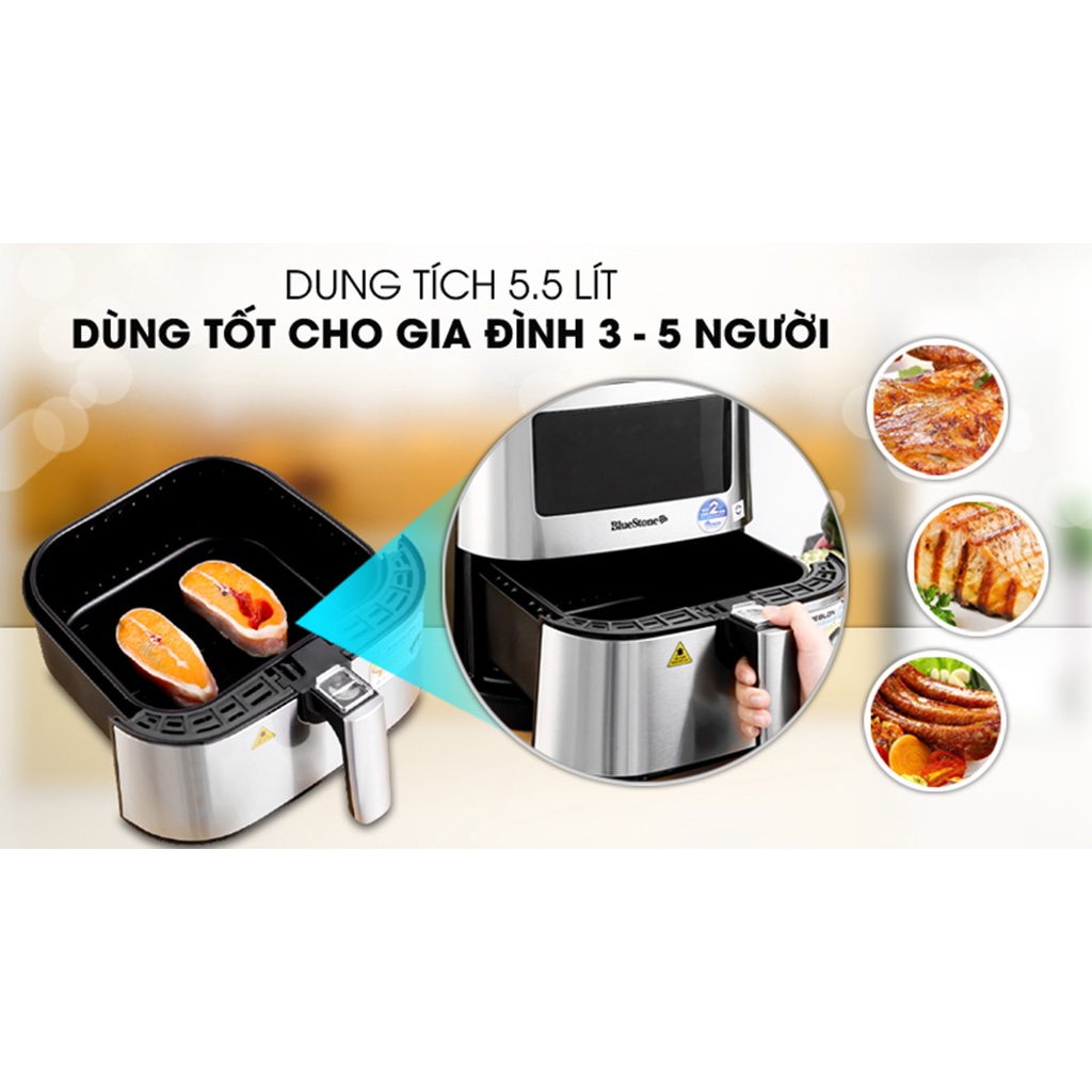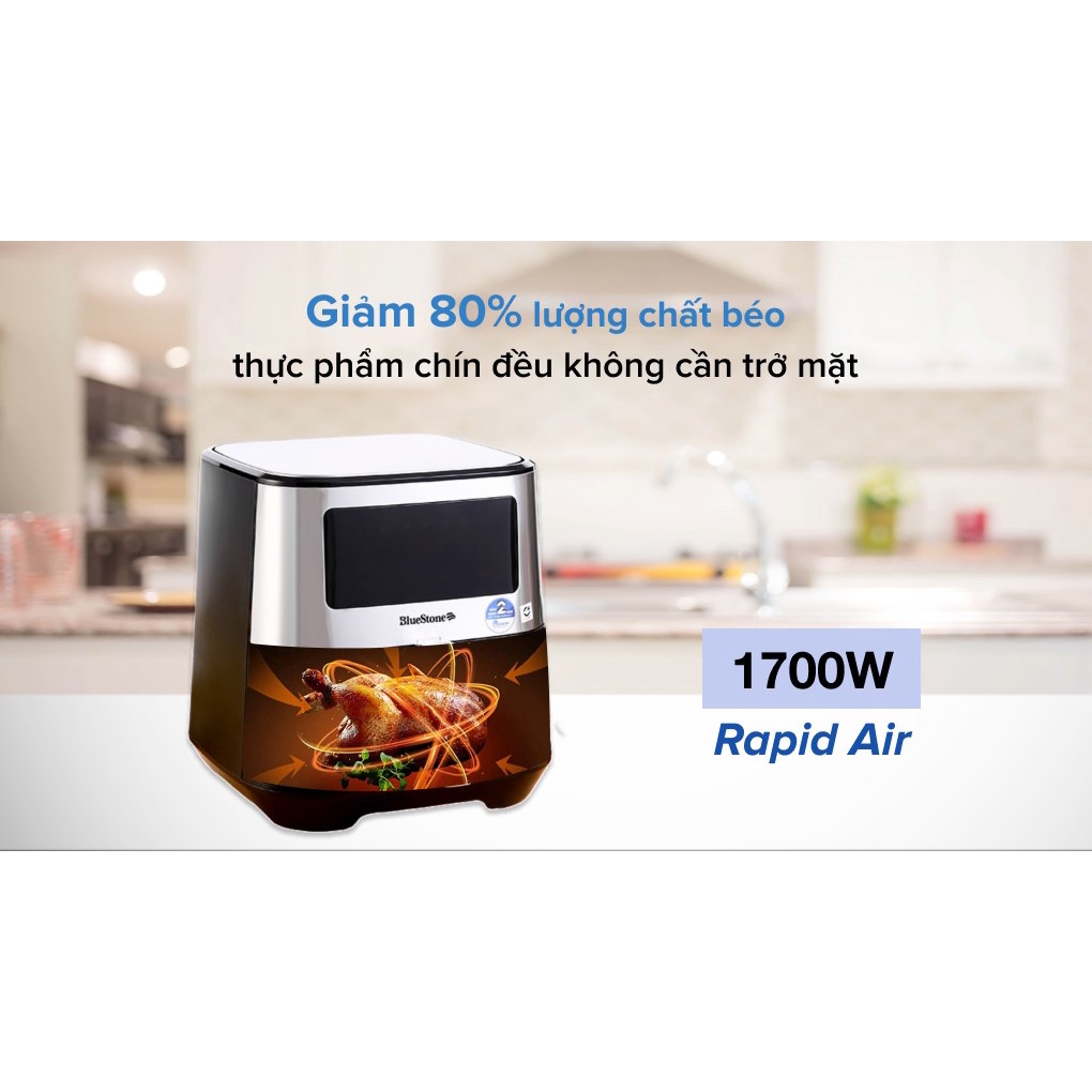Nồi chiên không dầu Bluestone AFB-5878, Công suất cao 1700W, Dung tích 5.5 lít, Lớp chống dính Greblon, Bảo hành 2 năm