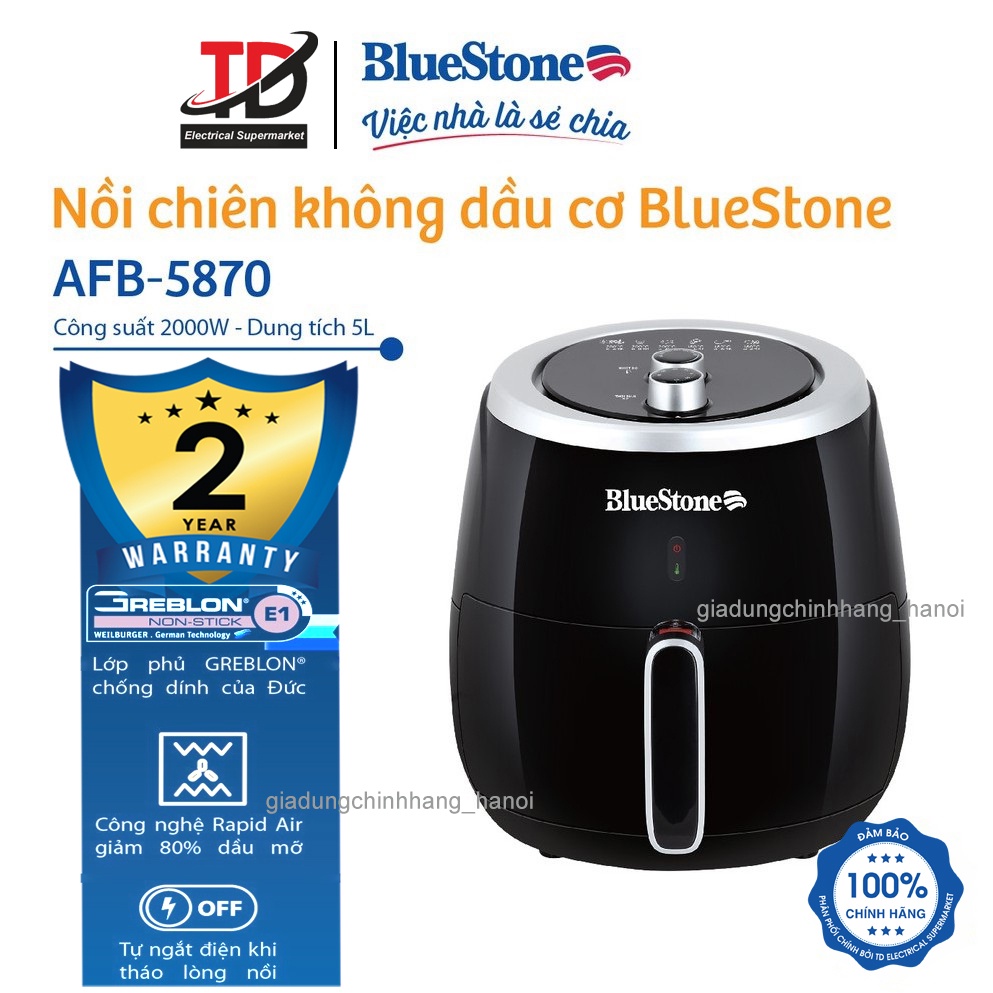 Thiết Bị Điện Gia Dụng > Đồ gia dụng nhà bếp > Nồi chiên không dầu || [Mã 273ELHA100K0 hoàn 7% đơn 500K] Nồi chiên không dầu Bluestone AFB-5870 5 lít - công nghệ làm nóng Rapid 2000wCòn hàng