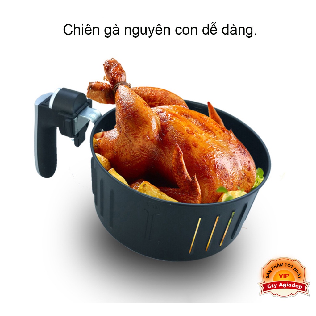 Dung tích nồi 6.5L. Giỏ có bề mặt chống dính cao cấp. Chiên gà nguyên con dễ dàng.